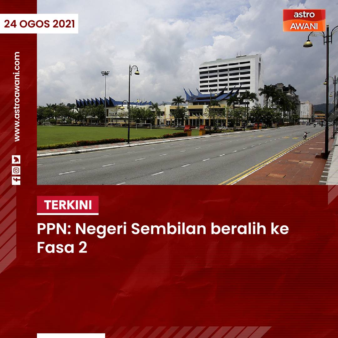 Menurut KPM bagi Negeri Sembilan pembukaan institusi pendidikan bawah KPM kekal pada 4 Oktober berdasarkan ketetapan pengoperasian bagi negeri Fasa 3 PPN. 1065 2 minutes read. Kongsikan Artikel IniSEREMBAN 24 Ogos Menteri Besar dan Kerajaan Negeri Sembilan menyambut baik keputusan kerajaan pusat yang mengumumkan negeri ini bakal beralih ke Fasa 2 Pelan Pemulihan Negara PPN Khamis ini.
