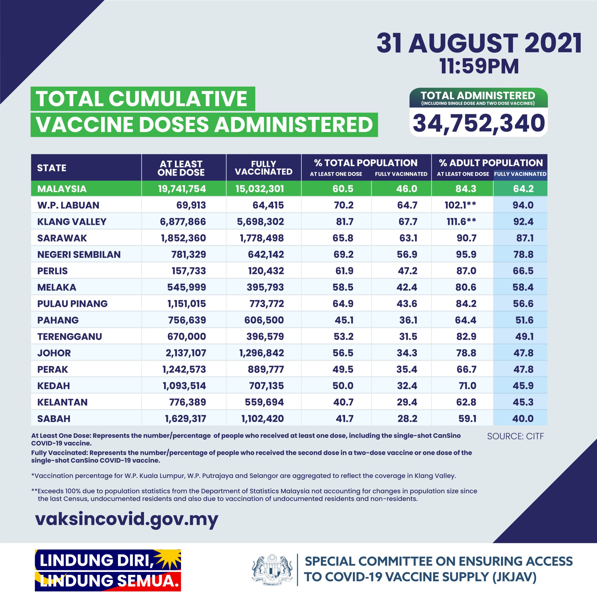 Vaksin Covid 19 On Twitter Cumulative Vaccination Report By State As Of 31 August 2021 Lindungdirilindungsemua